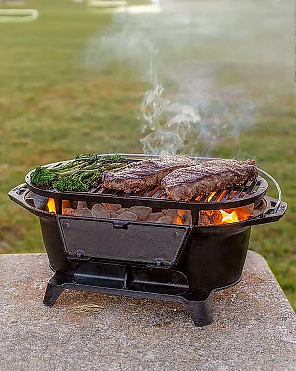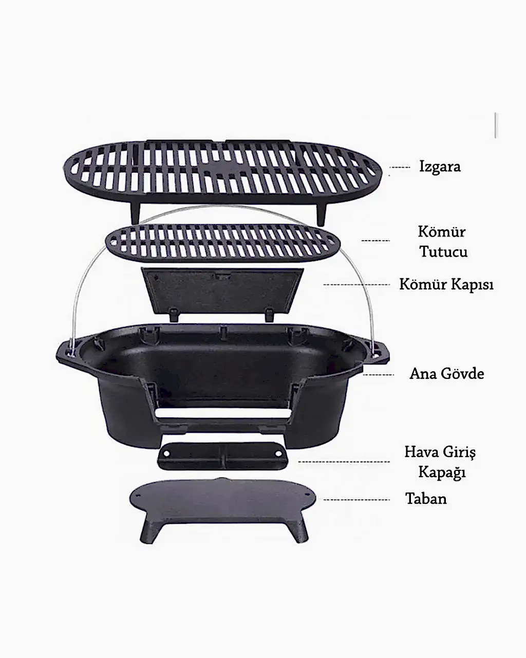 43 × 23 cm ızgara ölçüsü, et, sebze ve benzeri ürünlerin aynı anda hazırlanmasına imkân tanırken; alt ızgara bölümü, kömür yerleşimini düzenli hâle getirmeye yardımcı olur. Odun ve kömürle kullanım, geleneksel mangal pişirme alışkanlıklarına uygun bir yapı sunar. Döküm yüzeyin sağladığı ısı tutma özelliği sayesinde, daha dengeli ve sürekli bir pişirme süreci elde edilmesi amaçlanır.