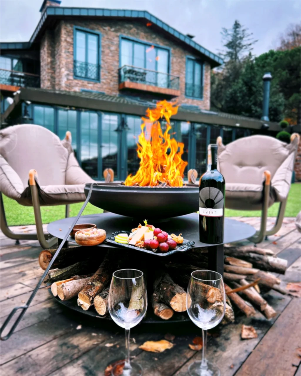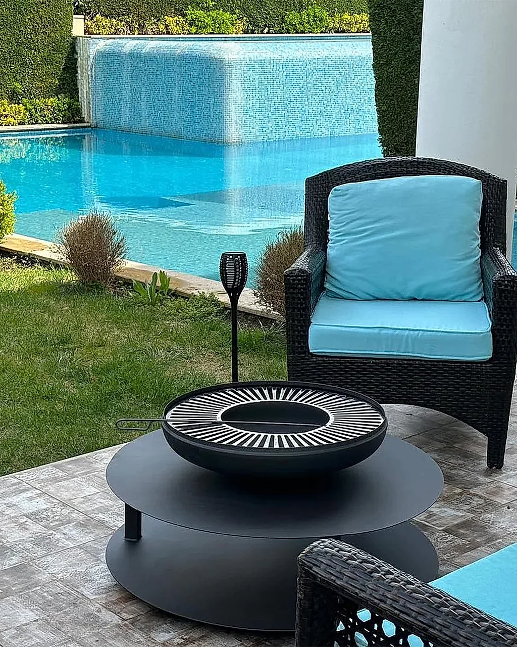 Açık alanda ateş deneyimini tek noktada toplamak üzere tasarlanan bu model, 60 cm yanma alanı çapı ve 90 cm masa çapı ile bahçe ve benzeri dış alanlarda geniş bir kullanım alanı sunar. 48 cm yükseklik ve 47 kg ağırlık, ürünün konumlandırıldığı alanda dengeli bir duruş hedefleyen kullanım senaryolarına uygundur. Geniş ateş çanağı yapısı, odun ve kömür ile ateş yakma sürecini daha düzenli bir alanda yönetmeye yardımcı olur.