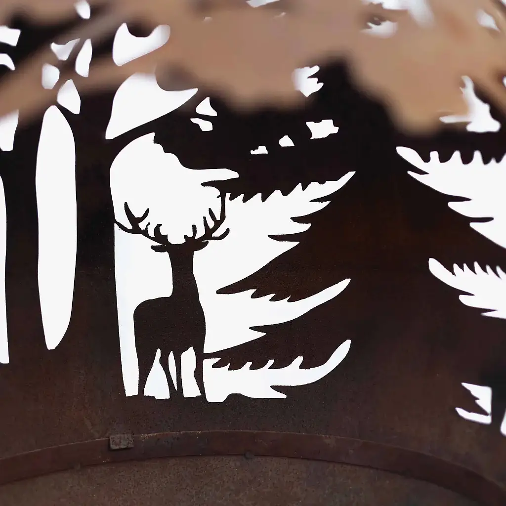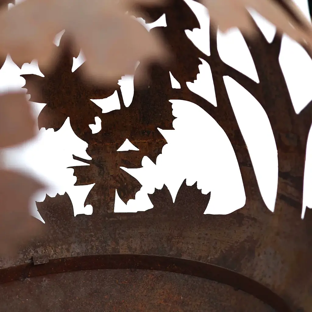 Dış mekân kullanımına yönelik tasarlanan bu model, lazer kesim detayları ve paslı görünümlü yüzeyi ile rustik bir estetik sunar. 57,5 cm çap ve 66 cm yükseklik ölçüsü, bahçe ve teras gibi alanlarda belirgin bir kullanım alanı oluşturmak isteyen kullanıcılar için uygundur. Hafif çelik gövdesi ve sağlam taban yapısı, açık havada dekoratif bir odak noktası oluşturmayı hedefleyen kurulumlarda değerlendirilebilir.