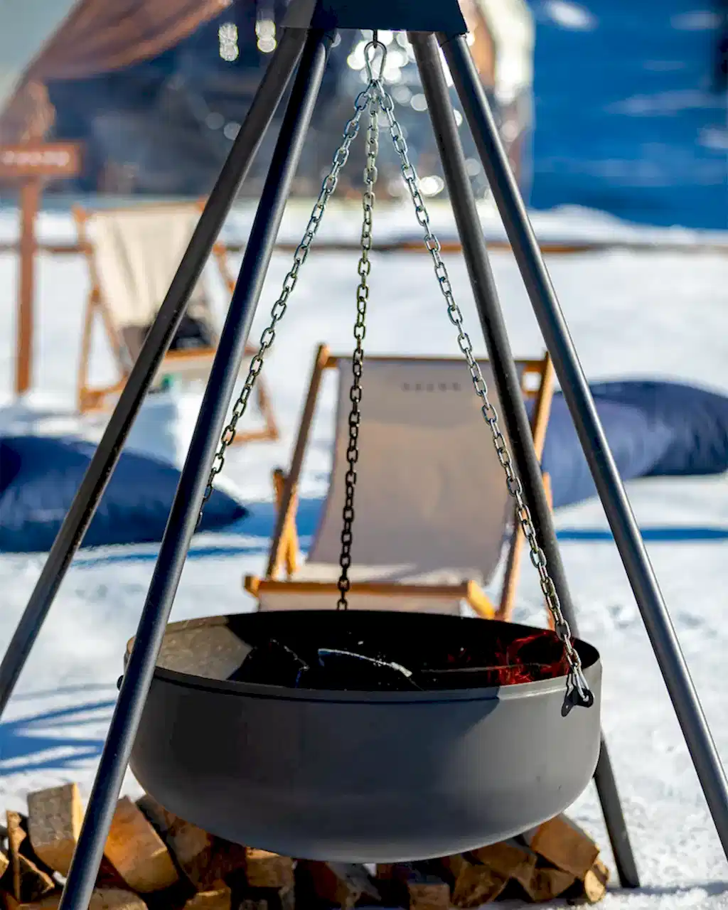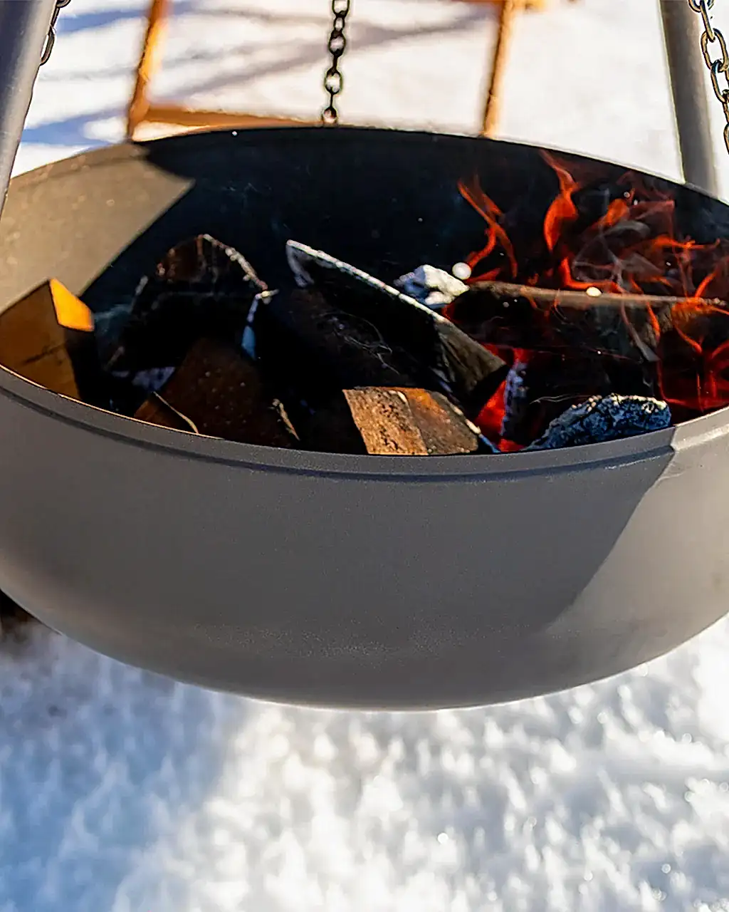 Üç ayaklı tripod yapısı ve zincir askılı kazan tasarımı ile kullanıma uygundur.